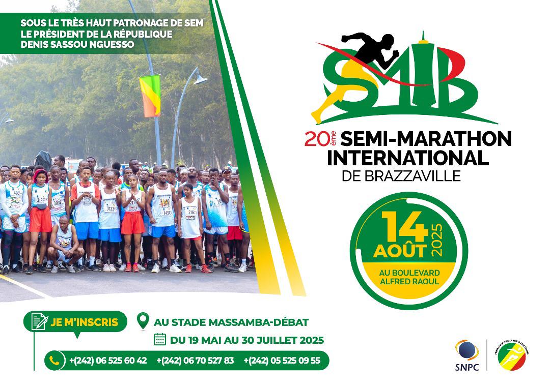 Le Semi-marathon international de Brazzaville (SMIB) 2025 aura lieu le 14 août prochain au Boulevard Alfred Raoul de Brazzaville, sous le très haut patronage du président de la République Denis Sassou N’Guesso. Entièrement gratuites de bout en bout, les inscriptions des athlètes sont en cours au stade Alphonse Massamba Débat ou dans les stations-services SNPC-D de Brazzaville et de Pointe-Noire jusqu’au 30 juillet 2025.